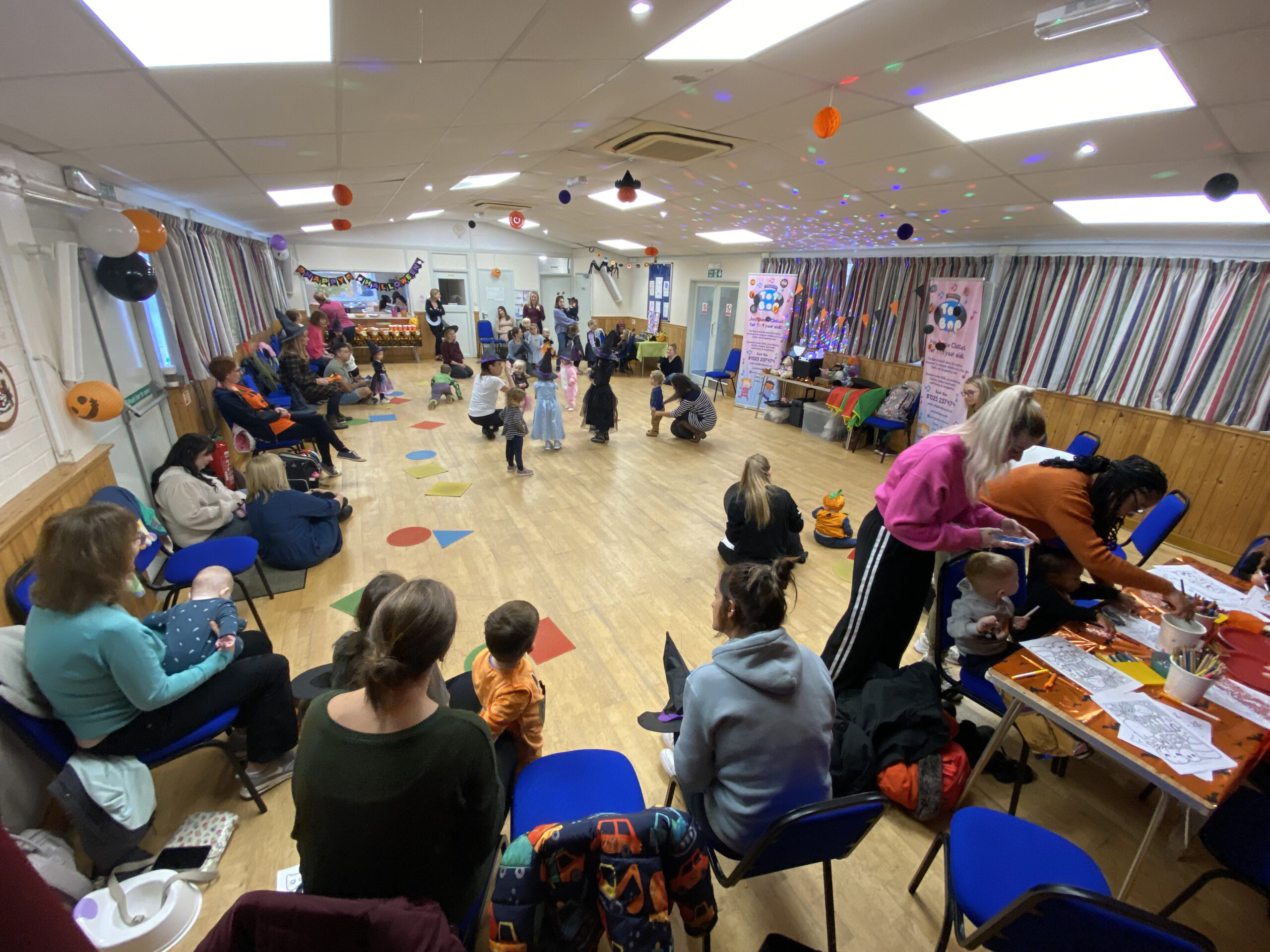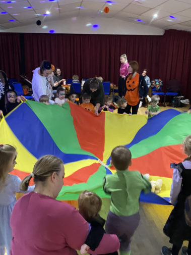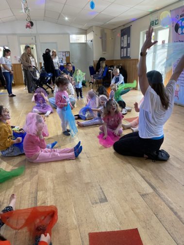 Join us for our ‘Tiny Tots’ class and experience a fun, funky and engaging introduction to music, movement and rhythm for your child. Classes are parent/carer participatory so have fun joining in with your little one, building memories and experiencing it together. There is lots of focus throughout on rhythm, moving to the beat and copying ‘actions’ and movement patterns. So don’t worry if your little one isn’t quite walking yet, there’ll be plenty for them to get stuck into. Enjoy this fun, colourful and imaginative class, with lots of props, puppets, instruments, scarves and bubbles! All our exercises are designed to work on developing early co-ordination, gross motor skills, imagination and ability to copy; all wrapped up in fun and imagination!